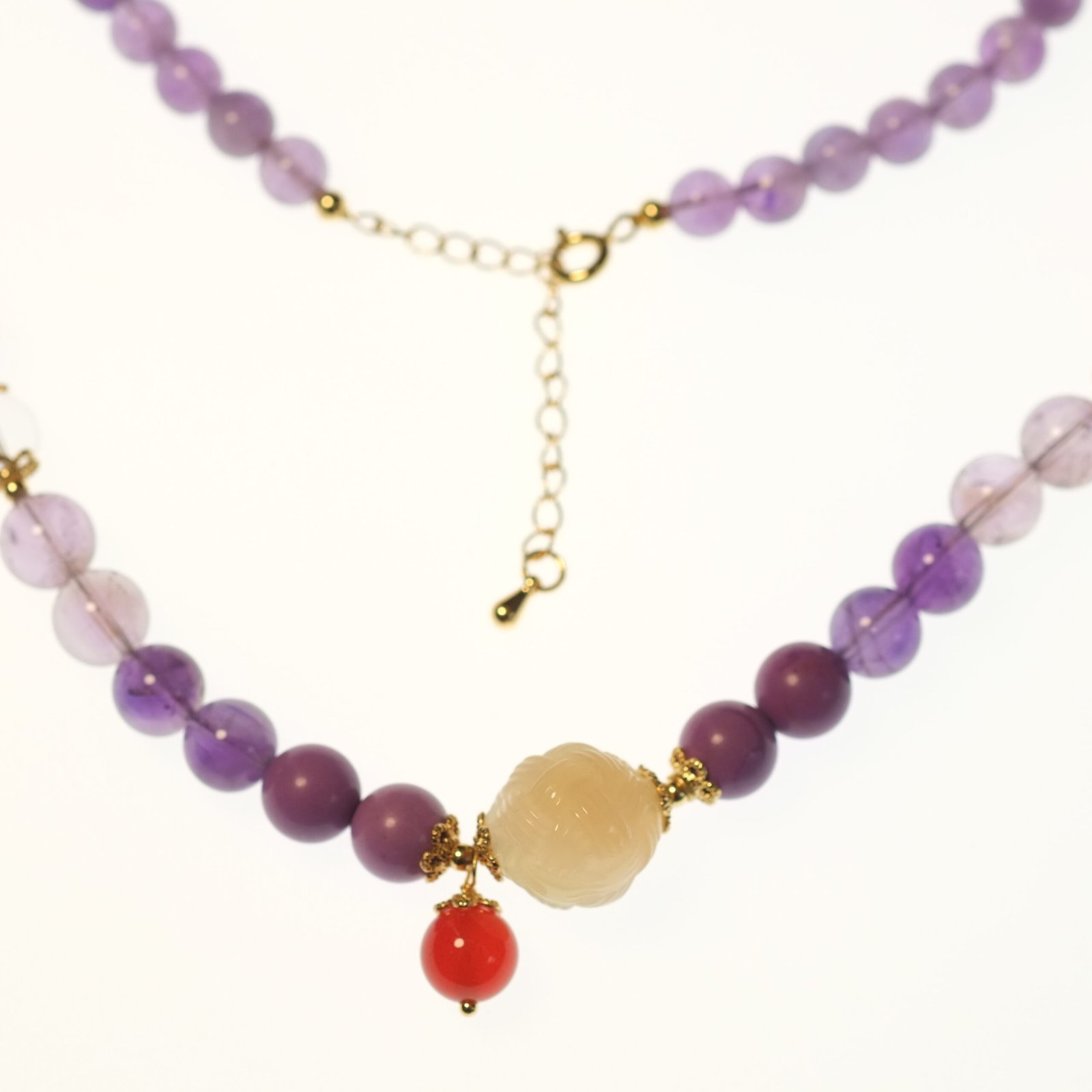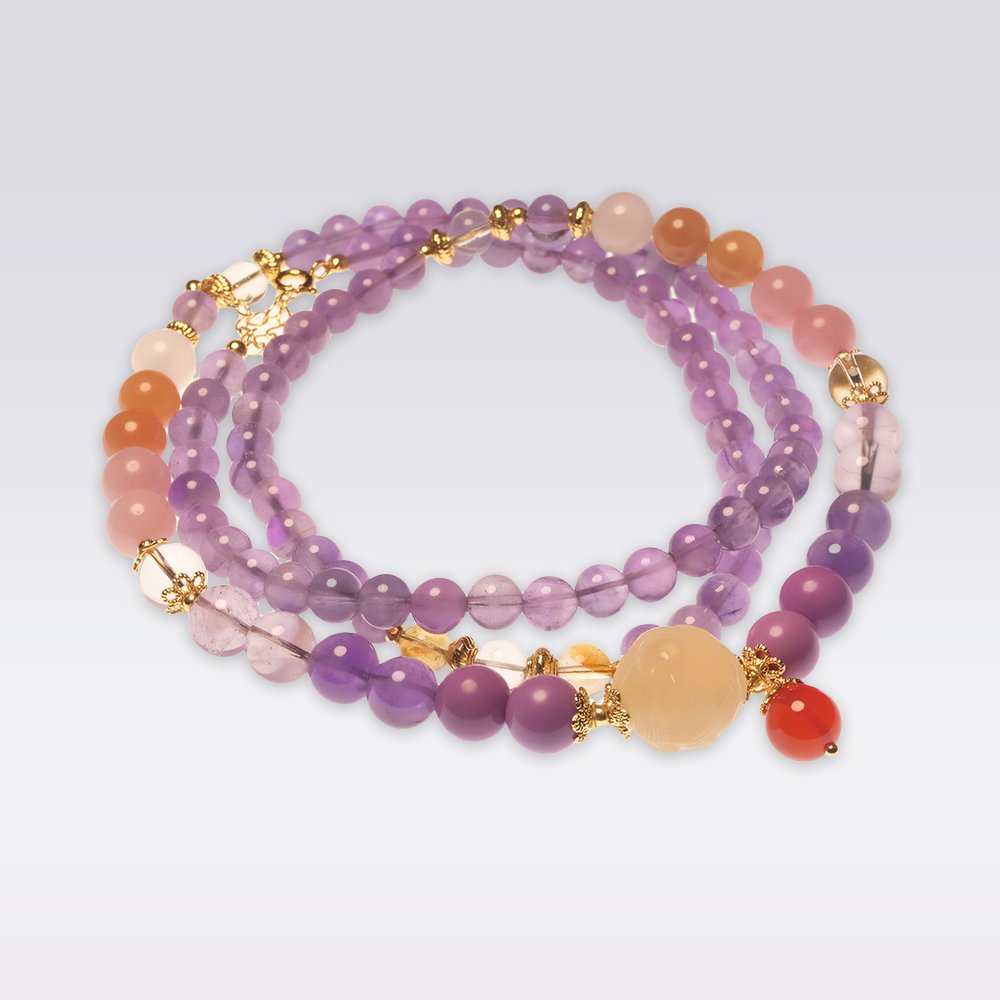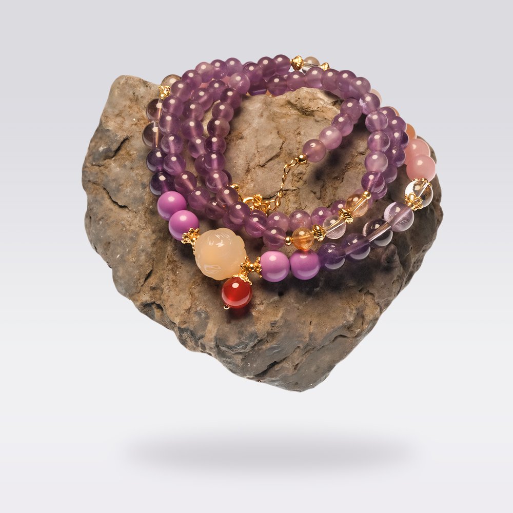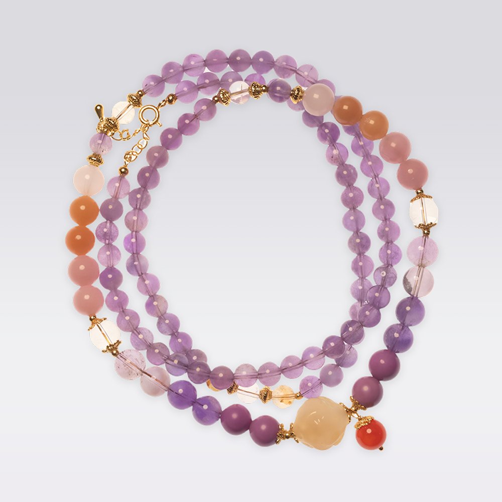 This Nine Purple Fire Element Natural Amethyst Necklace is crafted from a combination of natural gemstones, including amethyst, yanyuan agate, clear quartz, purple phantom quartz, lepidolite, red agate, sunstone, and rose quartz. Each gemstone carries its own unique energy. The design blends modern minimalism with Eastern energetic symbolism, offering a sense of sophistication and individuality. This necklace is not only a stylish accessory but also symbolizes improved personal fortune, emotional balance, and enhanced energy field — ideal for those who seek spiritual energy and refined living.