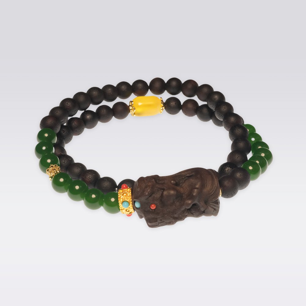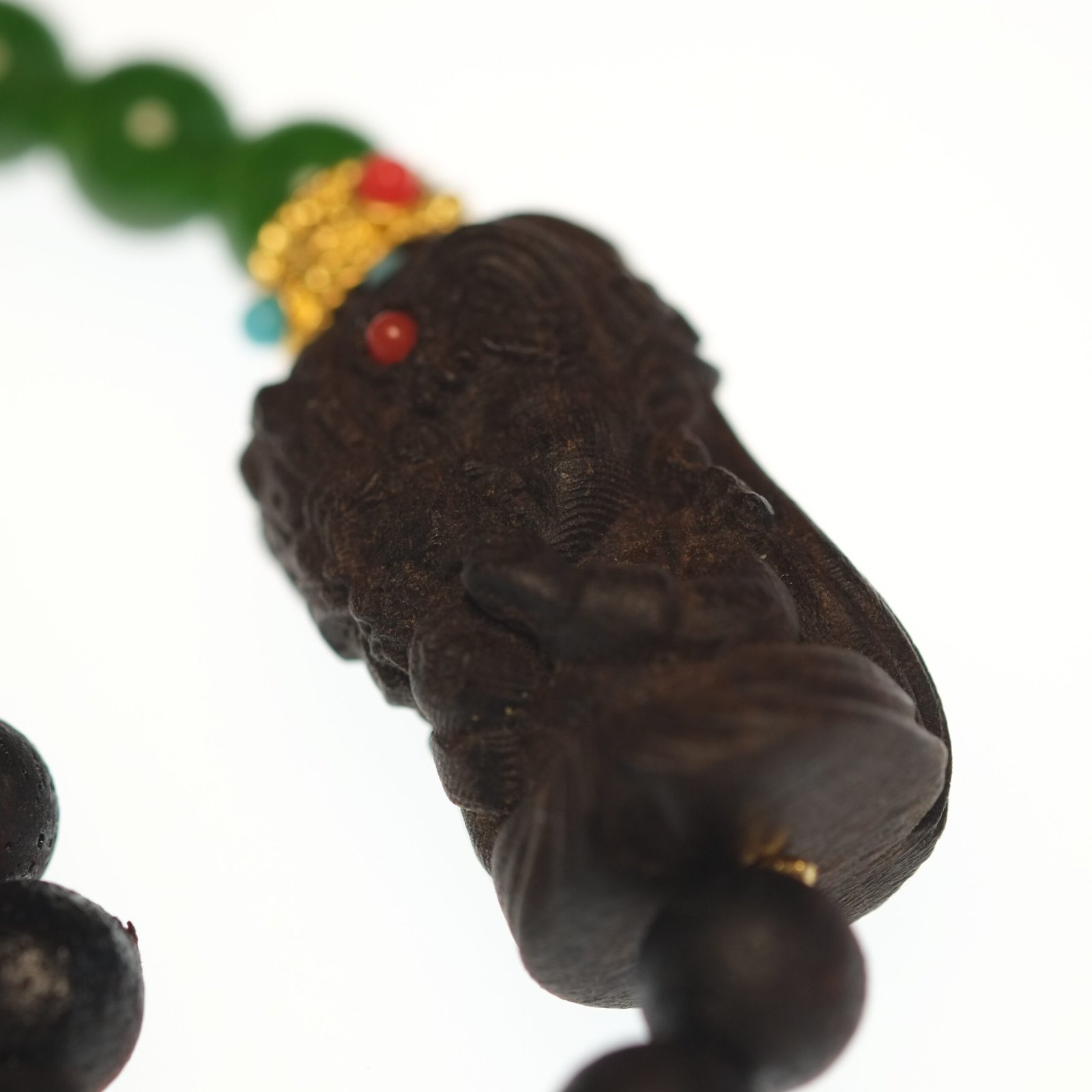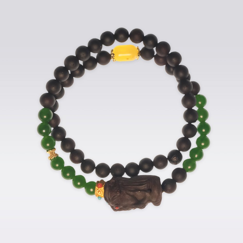 Good Luck Activation-Buddhist Sinker Agarwood & Jade Double Strand Bracelet