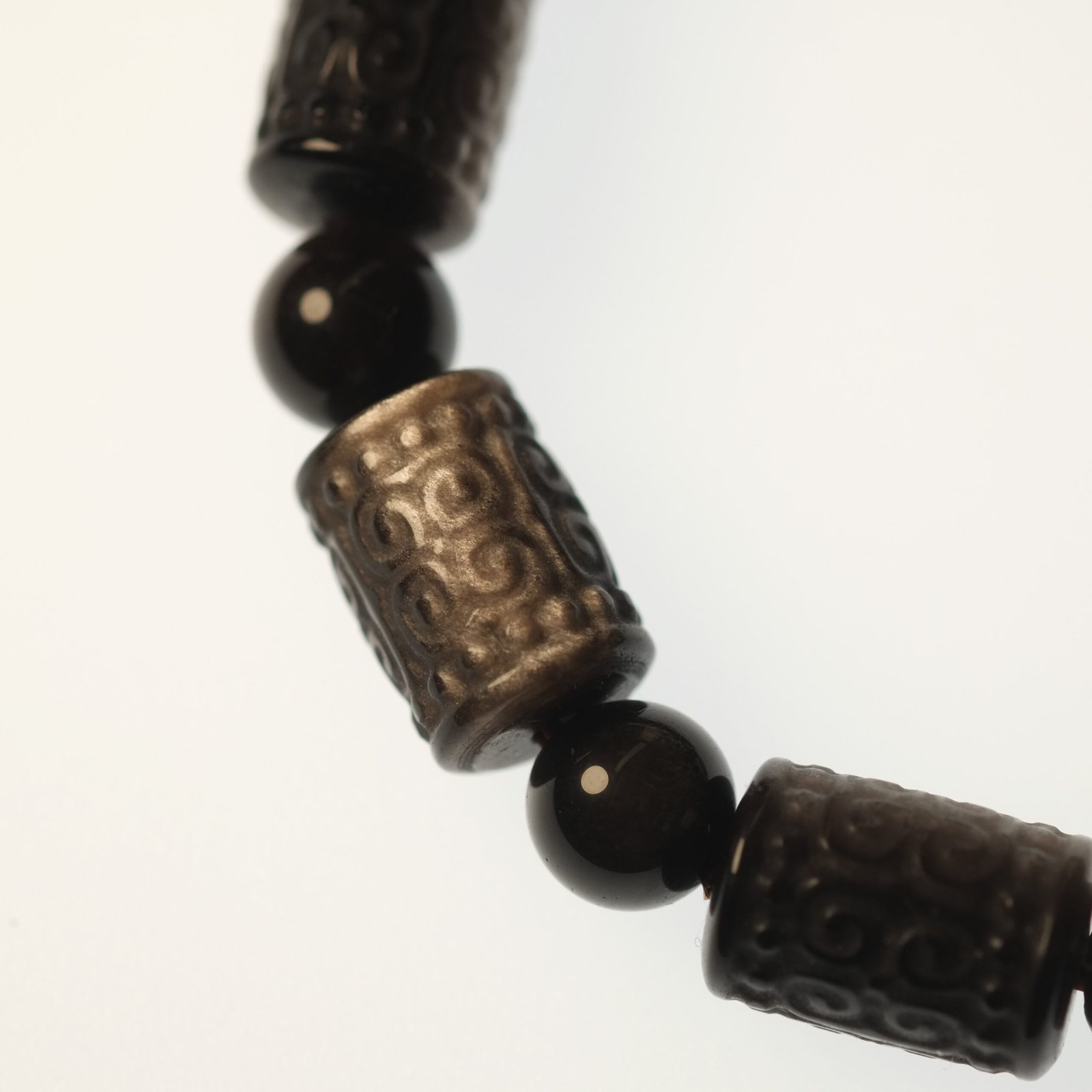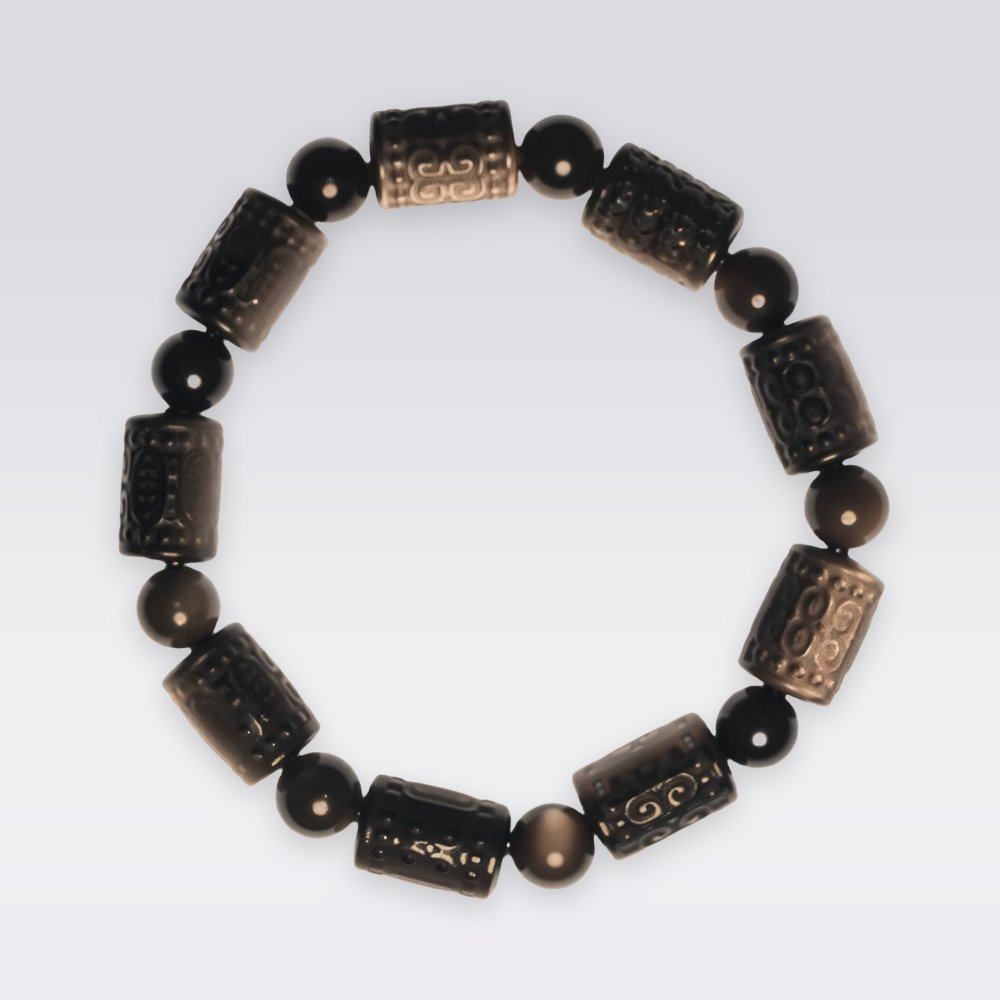 A variant of black obsidian with a metallic sheen, silver obsidian has stronger energy-clearing abilities than regular obsidian. It helps absorb negativity, relieve stress, enhance focus, and protect against psychic disturbances — making it ideal for high-pressure individuals, entrepreneurs, and spiritual practitioners. - Spiral Beads (Symbolic Design Beads)
