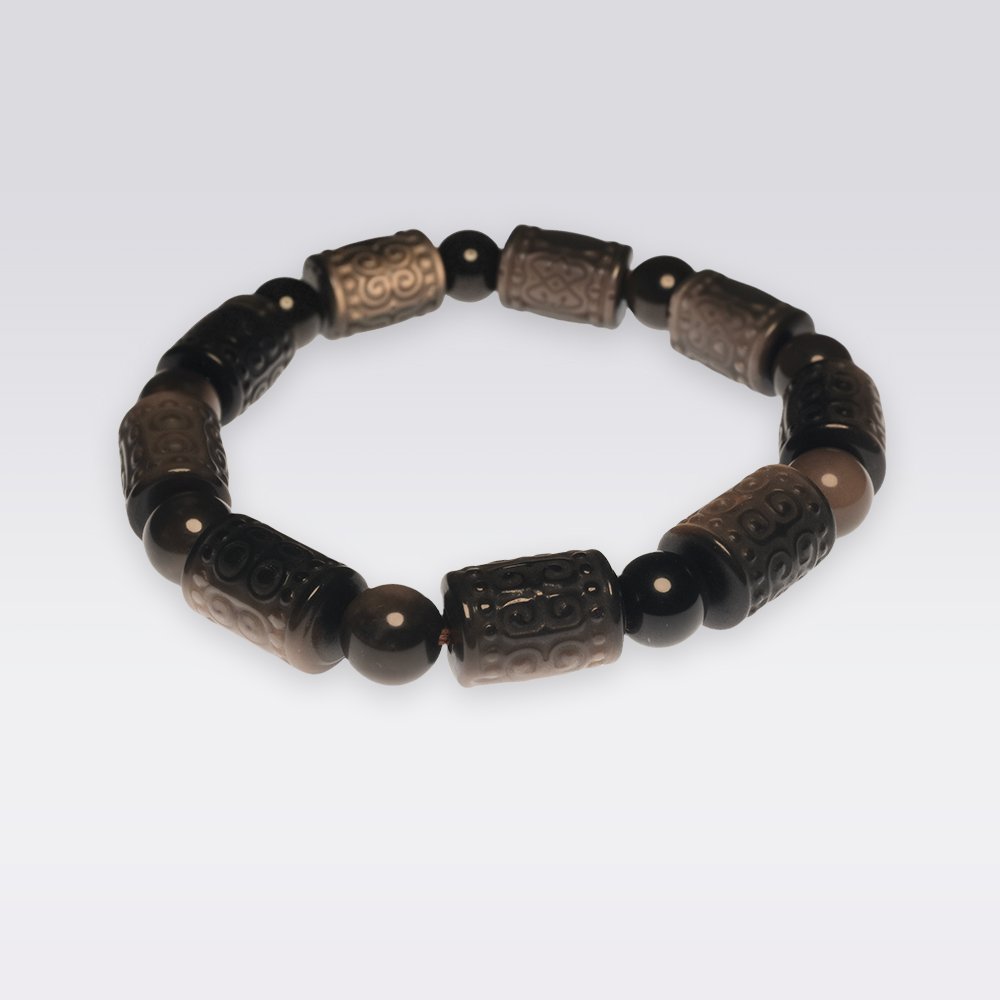 The Silver Obsidian Spiral Bead Bracelet – Handmade with Alternating Obsidian and Spiral Pattern Beads, is a spiritual accessory that blends modern aesthetics with traditional energy concepts.