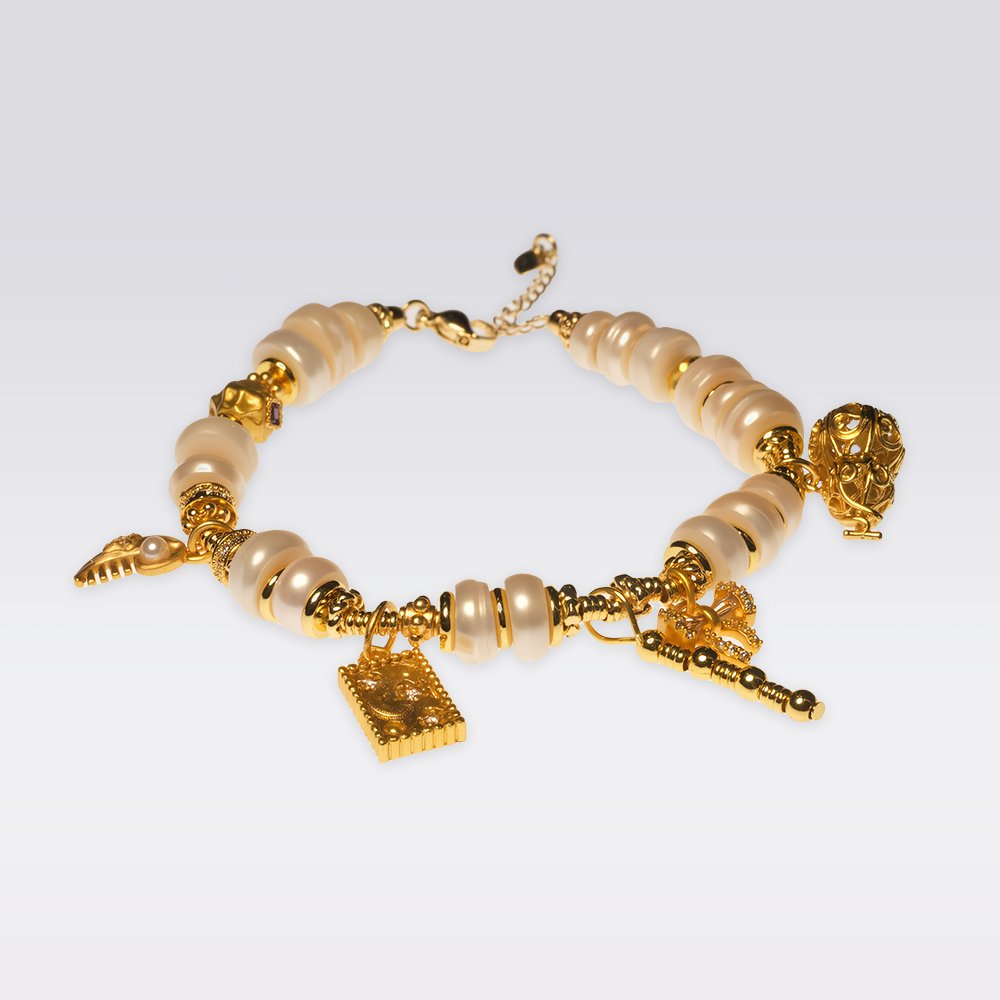 Health & Positive Energy-Handmade Buddist Rice Pearl with Gold-plated Gourd Charm Bracelet