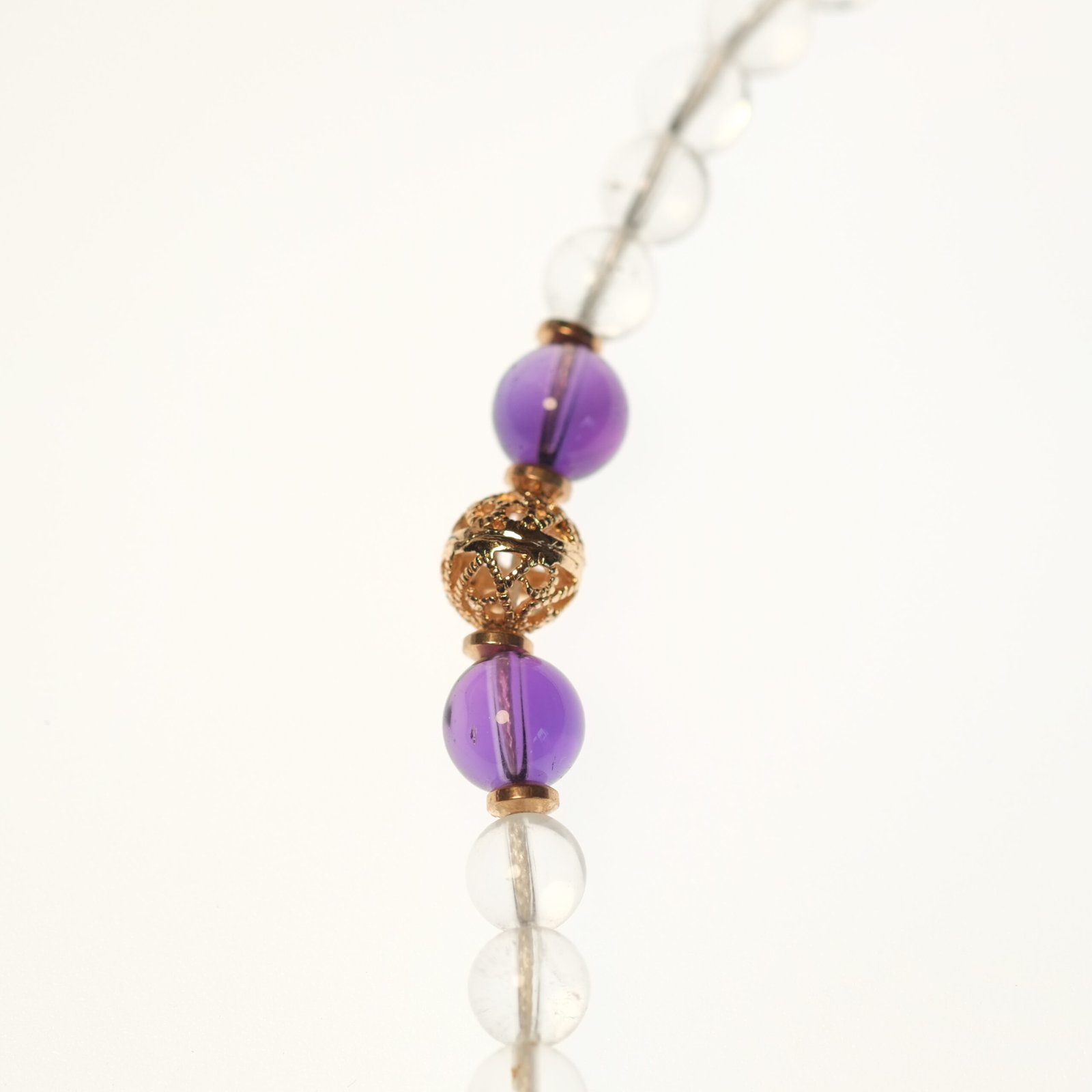• Necklace: Natural AAA white quartz and amethyst beads.