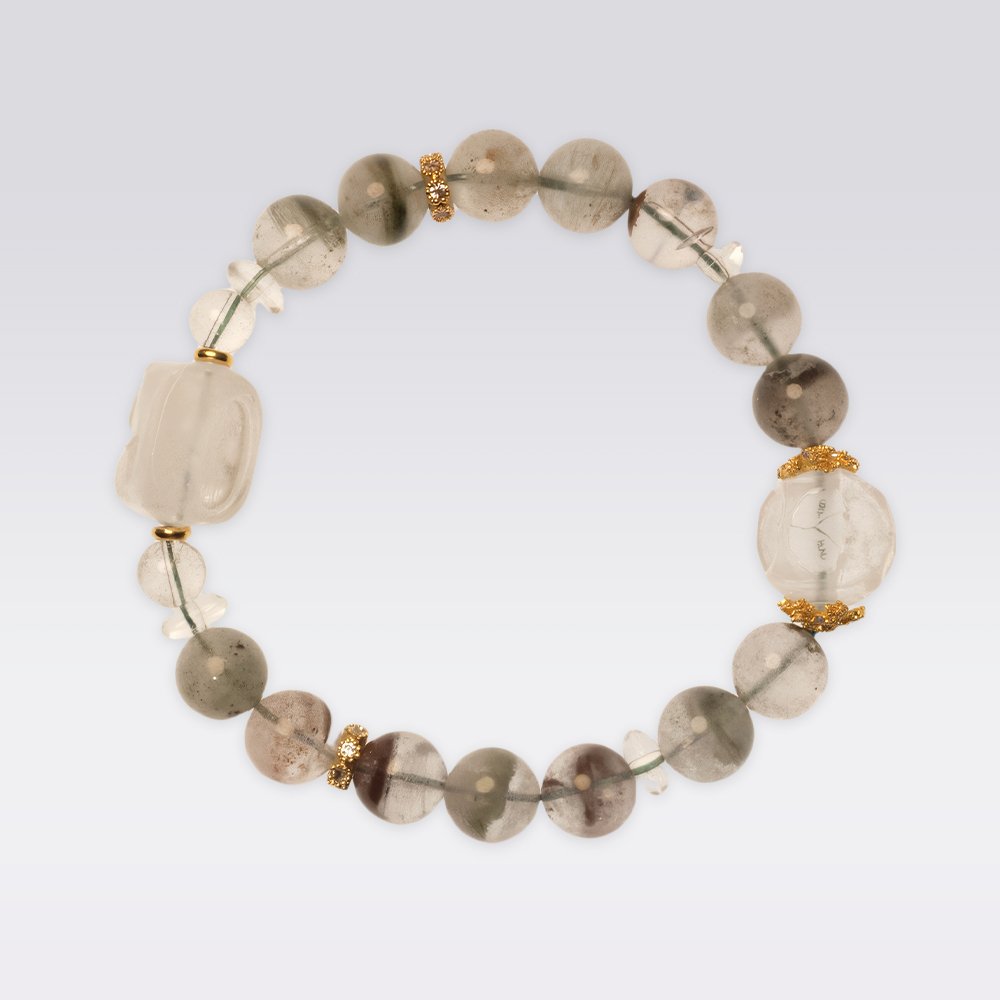 Handcrafted from natural green phantom quartz, green quartz (prasiolite), and citrine beads, this bracelet features the symbolic Pi Xiu charm — a traditional Chinese wealth guardian. With its refined design and powerful energetic properties, it not only enhances personal style but also supports career growth, financial prosperity, and positive life changes.