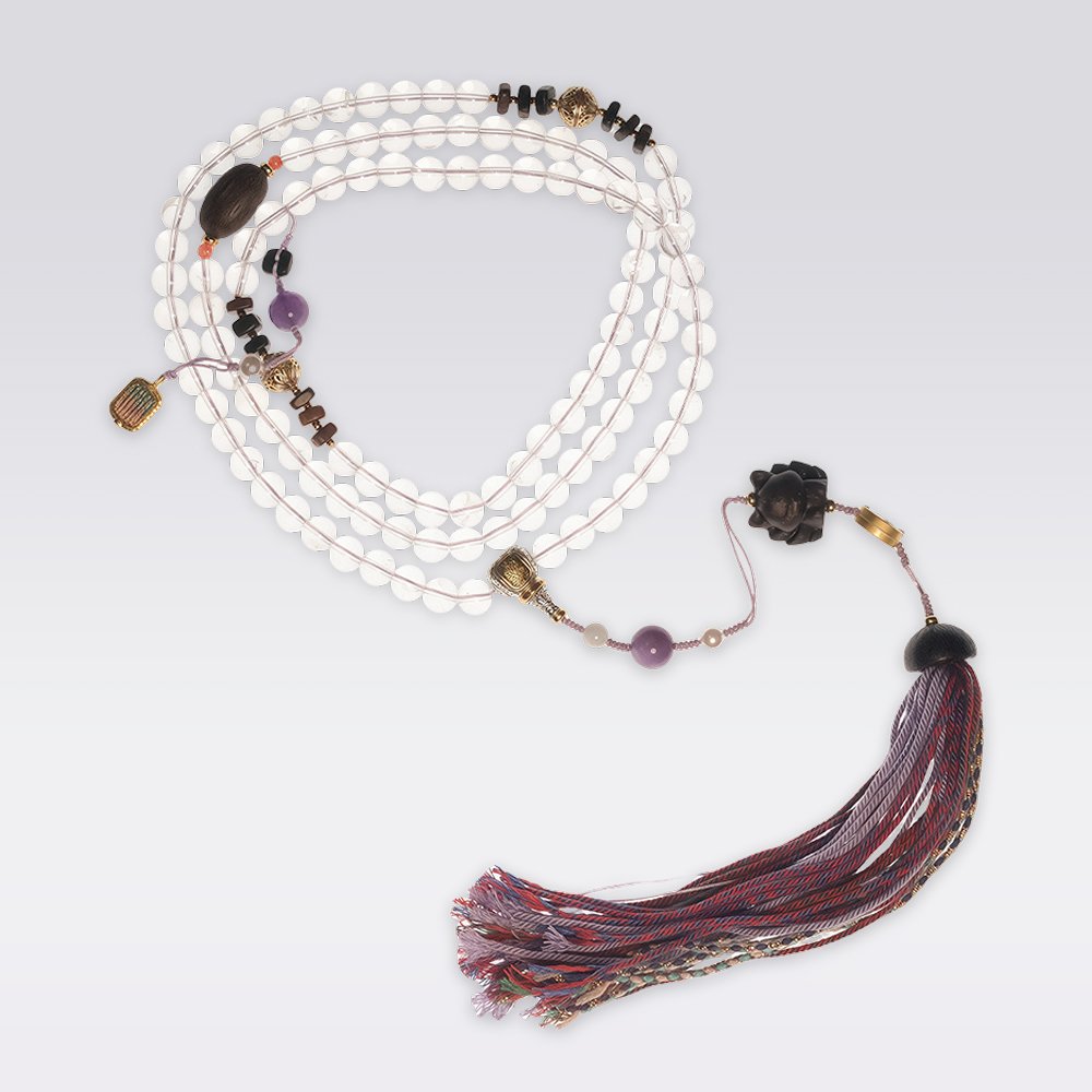 Wealth & Spiritual Energy-Buddhist Mala Natural Clear Quartz & Sandalwood Bracelet