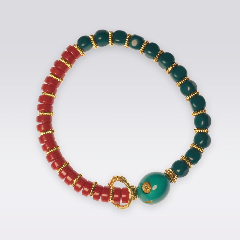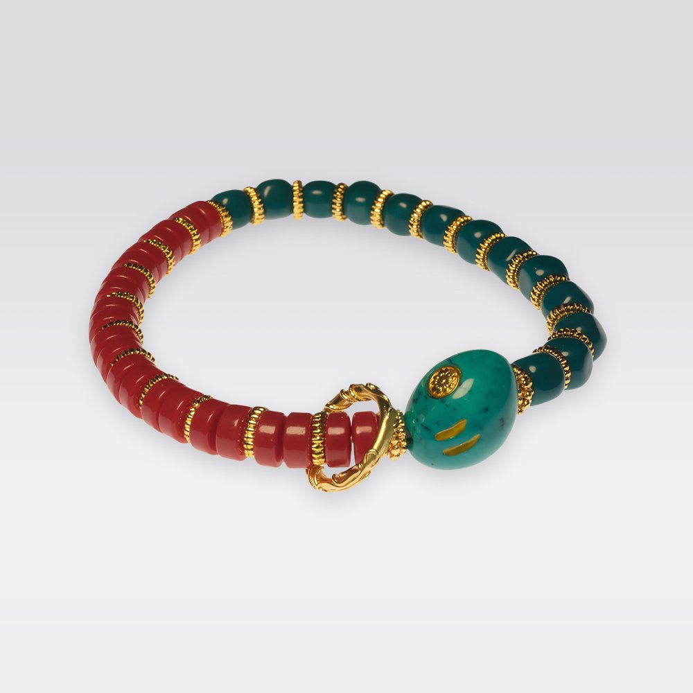 Crafted from vibrant blood glass beads, natural turquoise stones, and a smooth sliding loop metal clasp, this bracelet represents protection, wisdom, and positive energy flow — making it ideal for those who appreciate meaningful jewelry with spiritual depth.